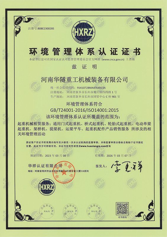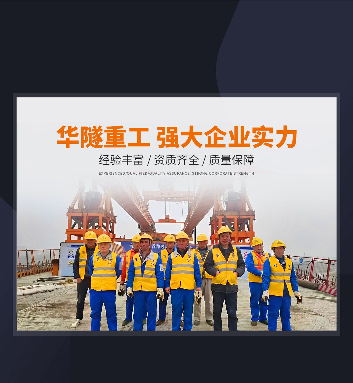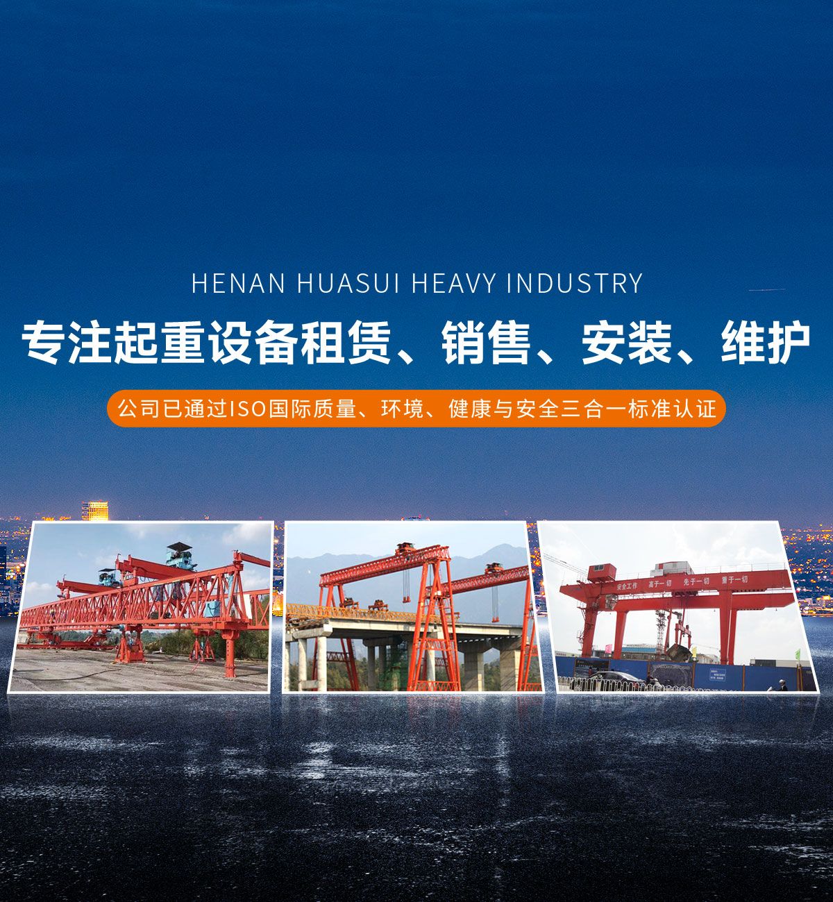 河南華隧重工機械裝備有限公司主要從事通用門式起重機、橋式起重機、電動單梁起重機,輪胎式起重機、架橋機、提梁機、遠梁平車、鋼絲繩電動萌蘆、卷揚機、起重配件制造、銷售:起重機械租賃、安裝和維修,起重設備園收,機械設備維修,鋼結構工程承包,橋梁工程及技術咨淘服務,銷售五金制品、機電設備:建設工程監(jiān)理,建設工程設計,各類工程建設活動,建筑勞務分包,建筑物折除作業(yè),施工作業(yè),工程管理服務,土石方工程施工,裝如發(fā)運。  公司已通過IS0國際質量、環(huán)境、健康與安全三合一標準認證,特種設備制造許可證和特種設備安裝改造維修許可證。擁有完熟的質量管理體系。嚴格的管理制度,強大的生產能力和先進的檢測手段,在保證產品質量的同時,也具備了極強的市場競爭力。  公司堅持科技創(chuàng)新為理念,產品質量為核心,注重信譽,建立了減信可靠、快捷、思速。便利周到的售后服務網絡。  我們擁有的技術專家和技術服務隊伍為客戶提供充善的售前技術支持和全天候的售后服務體系,讓您無后顧之憂,享受一站式的超值服務。  “華隧重工,伴您成功“是華隧重工永遠的宗指,真被的希望與各界朋友攜手并進。共創(chuàng)輝準!